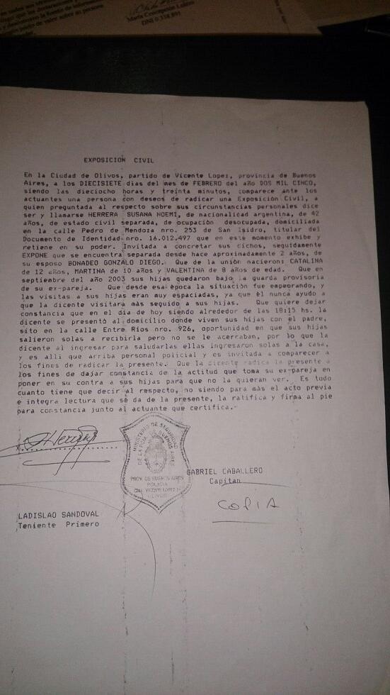 Susana herrera, madre de sus hijas catalina, martina y valentina, dijo que bonadeo es un golpeador.
